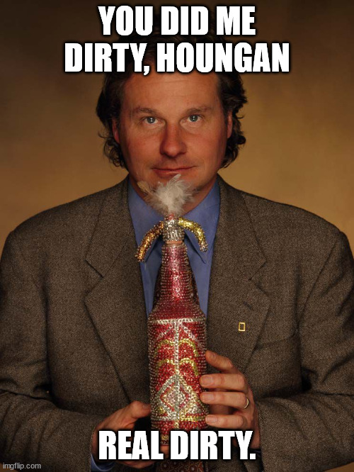 I should note here that concepts and teachings involving the gwo bonanj and the ti bonanj are tremendously varied, to the point where some present them as having the opposite roles to others, and the division between them is hazy and indistinct. We can content ourselves in knowing that the two parts exist, and play their roles, without getting too hung up on the varied nomenclature. Wade Davis, who I otherwise adore, appears to be one source of this confusion. Who hurt you, Wade? You know that hurt people hurt people. Some of the back-and-forth about it can be examined in Roberto Strongman’s painfully titled The Afro-Diasporic Body in Haitian Vodou and the Transcending of Gendered Cartesian Coporeality. It’s title shit like this, I tell ya, that makes me ashamed to have a graduate degree. I mean…I know this sort of thing isn’t meant to sound pretentious, and I loved it when I was younger, but c’mon. But I digress (constantly).