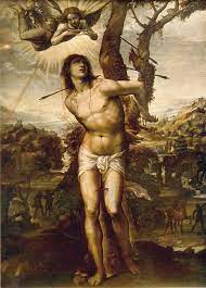 Saint Sebastian is the image often associated with him, not because of the arrow-pierced saint, but because of the tree behind him.